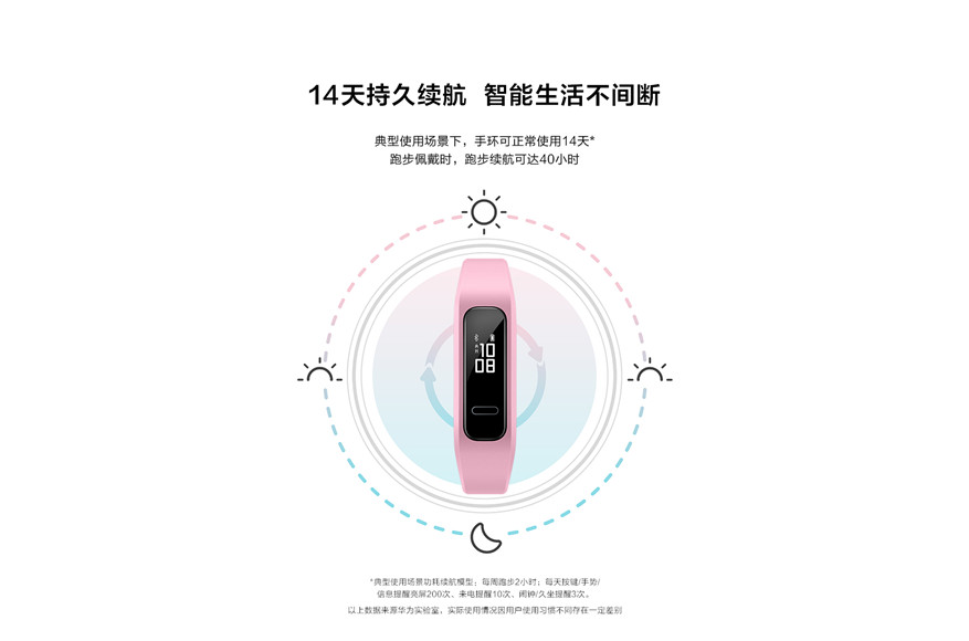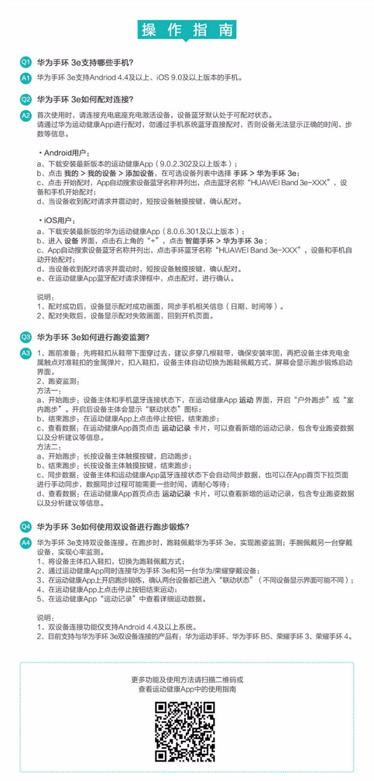 參數(shù) [品牌] HUAWEI [型號(hào)] 華為手環(huán)3e [商品毛重] 約6g(不含腕帶)/約17g(含腕帶) [處理器] iOS 9.0及以上 [類型] 華為終端智能手環(huán)控制軟件V6.0 [電源] 理論待機(jī)時(shí)間約21天