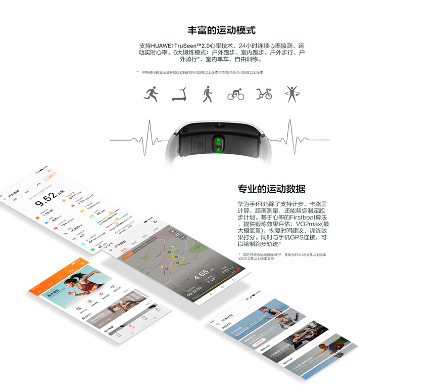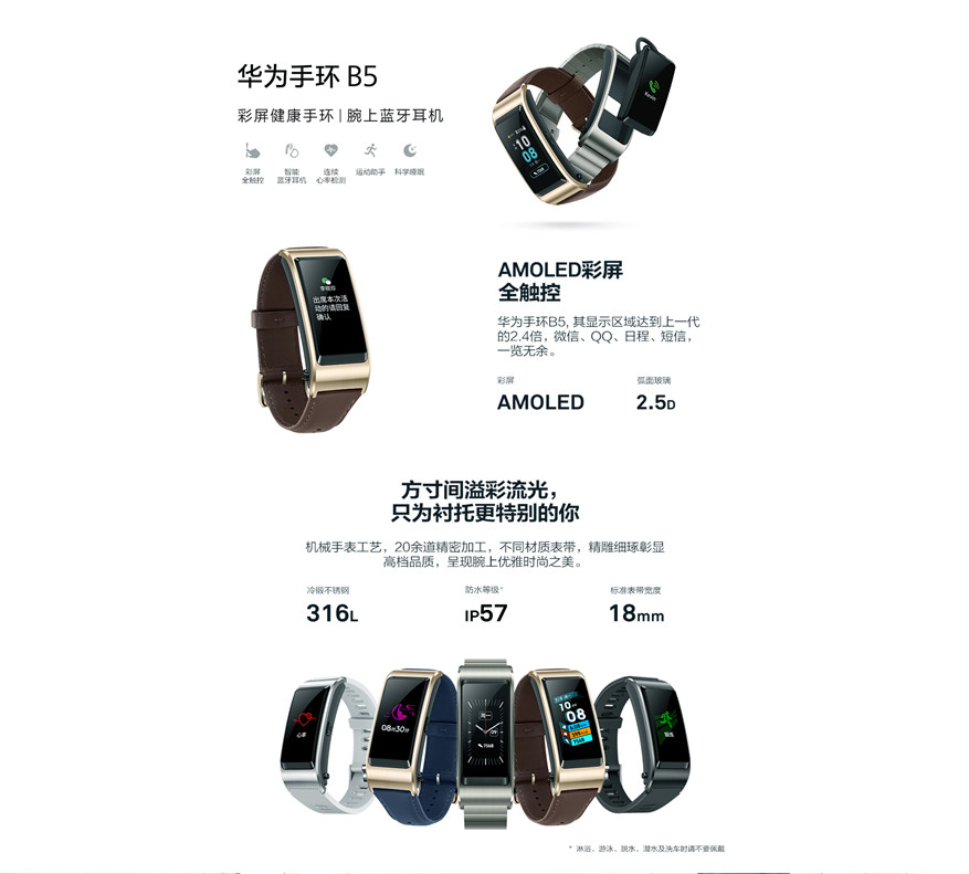 B5主機(jī)× 1USB線X 1快速啟動指導(dǎo)&安全信息&保修卡X 1表帶調(diào)整工具(僅時尚款配備)X 1耳套X 3(耳機(jī)安裝1個+附贈2個)