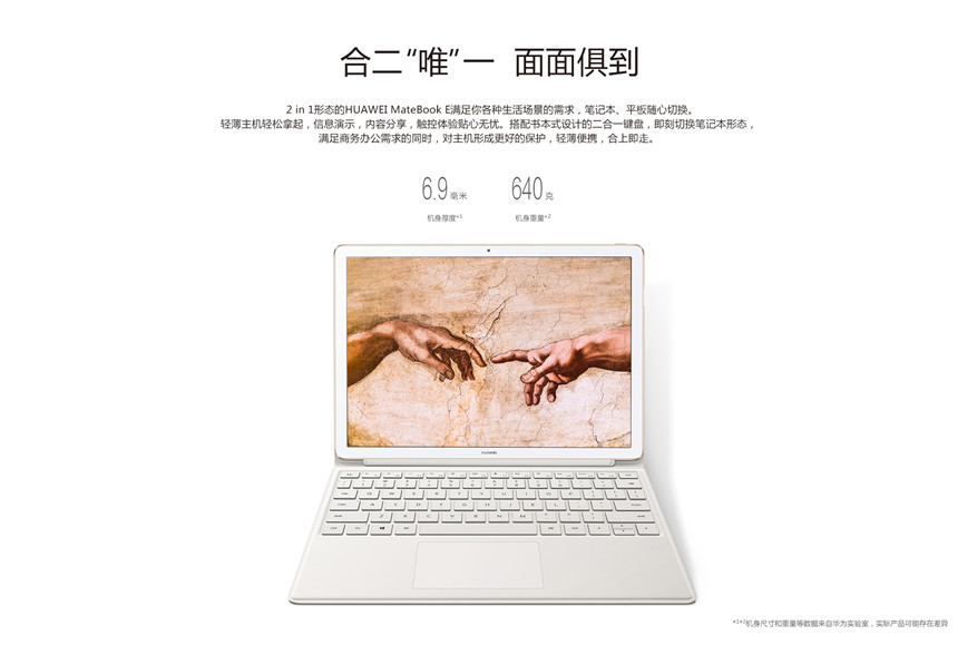 HUAWEI MateBook E 主機(jī)X 1HUAWEI MateBook E 二合一鍵盤X 1電源適配器X 1USB-C 數(shù)據(jù)充電線X 1Huawei MateDock 2 擴(kuò)展塢X 1快速入門&保修證書X 1