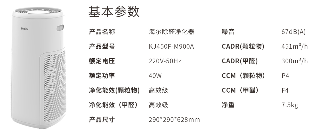 > 海爾空氣凈化器KJ450F-M900A 白色(支持HUAWEI HiLink)