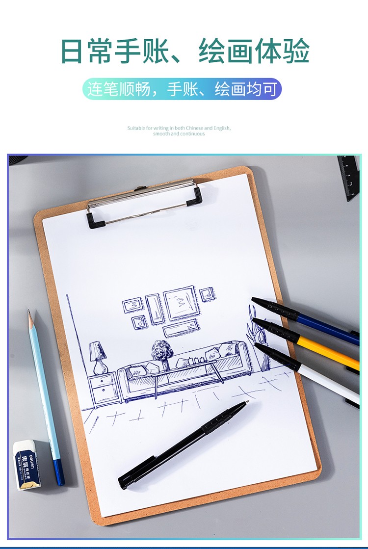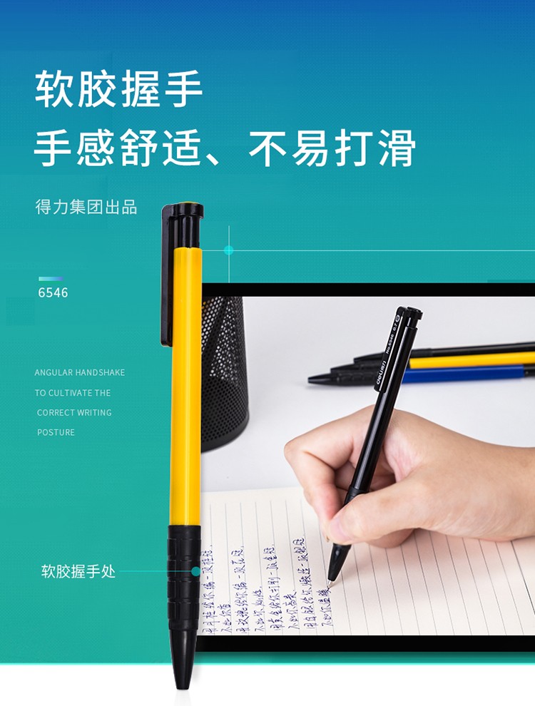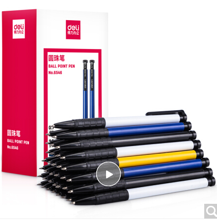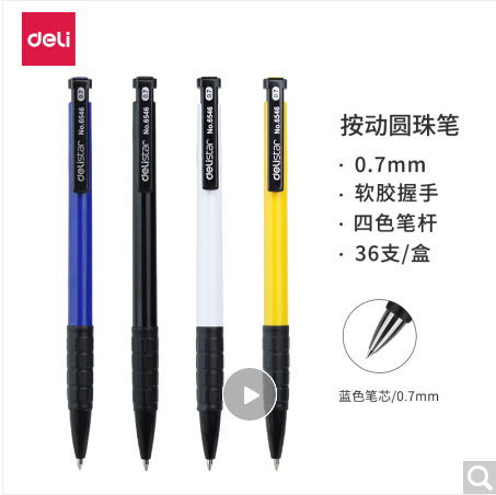 > 得力(deli)0.7mm藍(lán)色按動圓珠筆中油筆 軟膠握手原子筆36支/盒