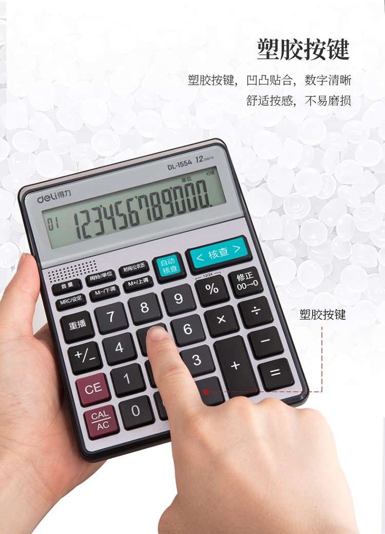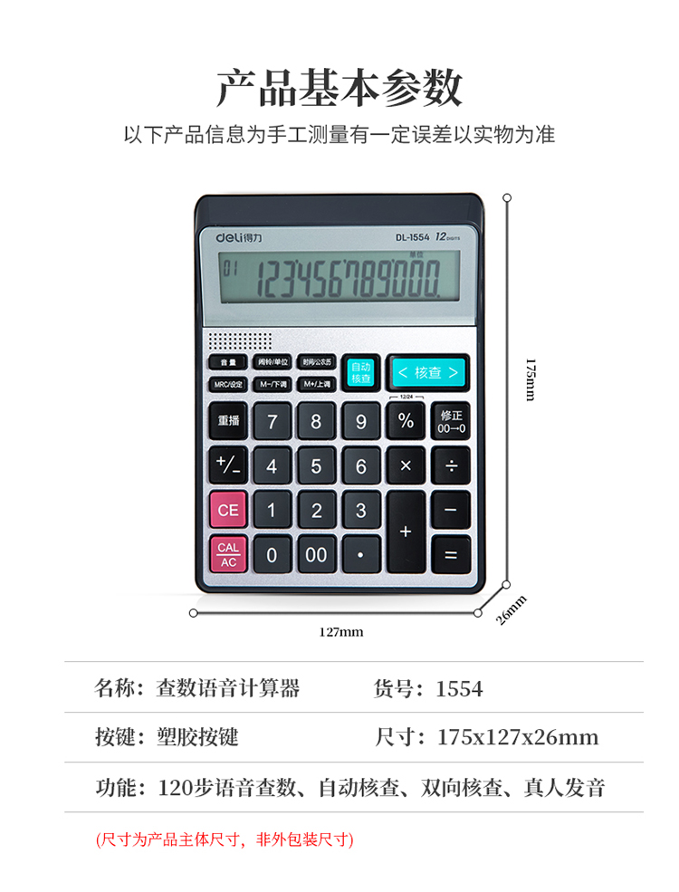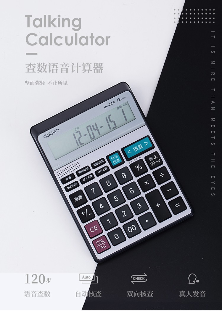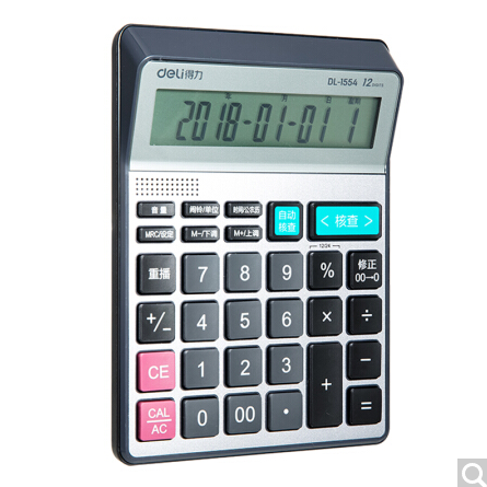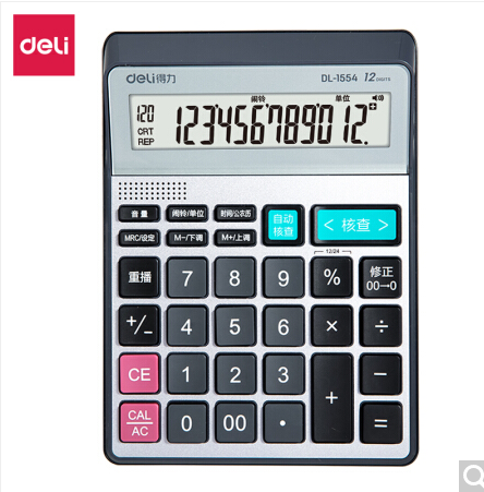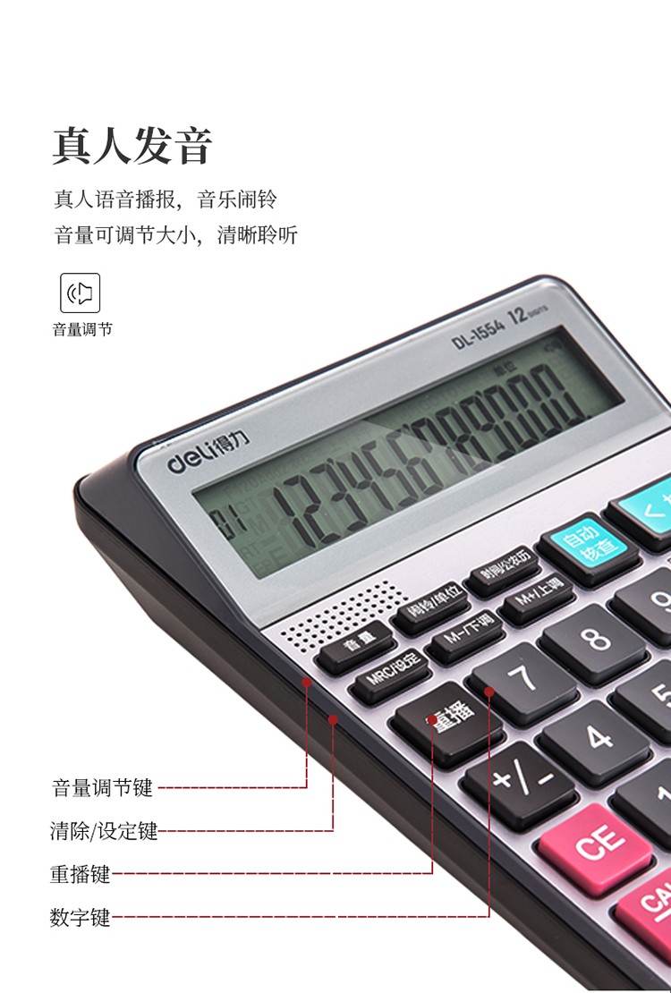 > 得力(deli)可查數(shù)后退修正語音計(jì)算器 真人語音播報(bào)計(jì)算機(jī) 銀色1554