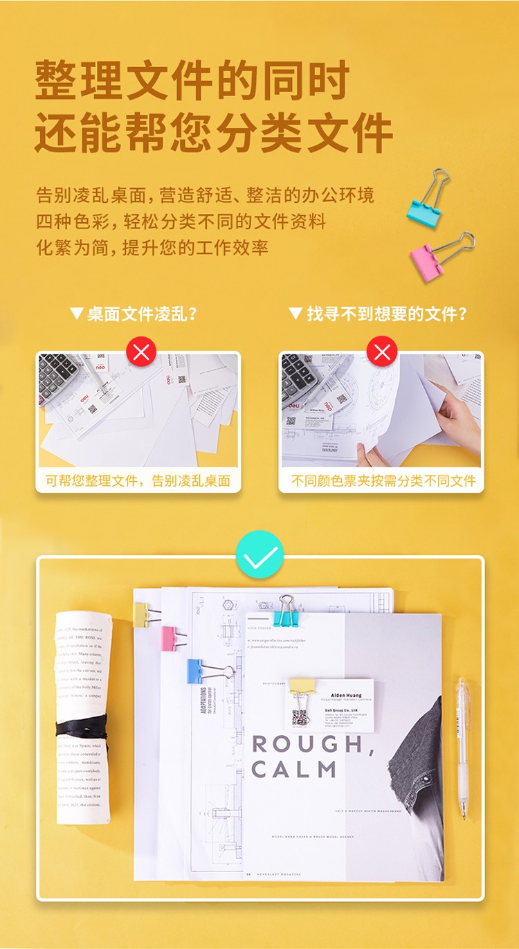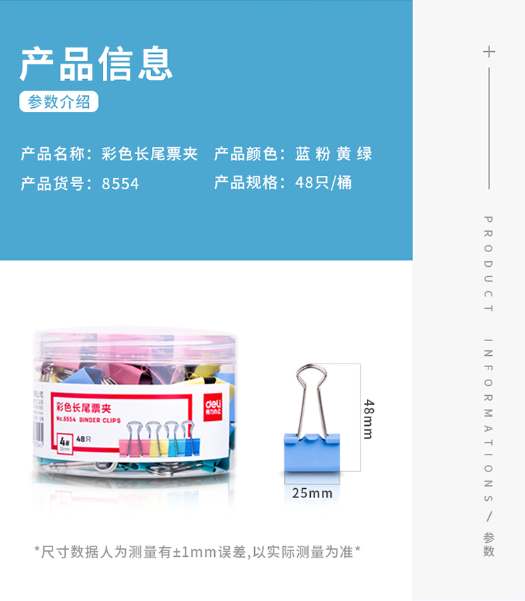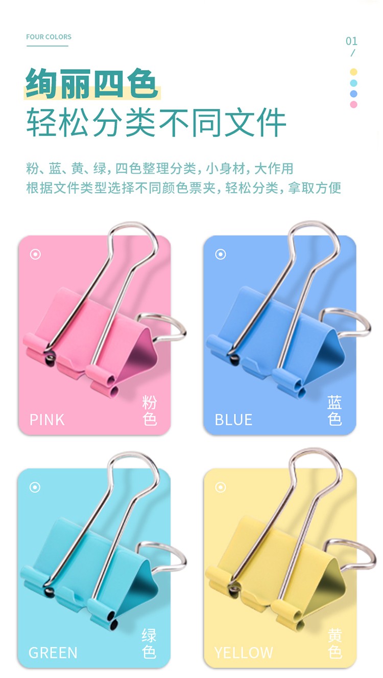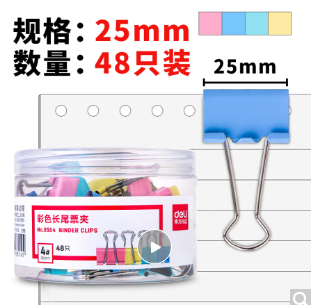 > 得力(deli)48只25mm彩色長尾夾票夾 4#金屬燕尾夾票據(jù)夾子 辦公用品 8554