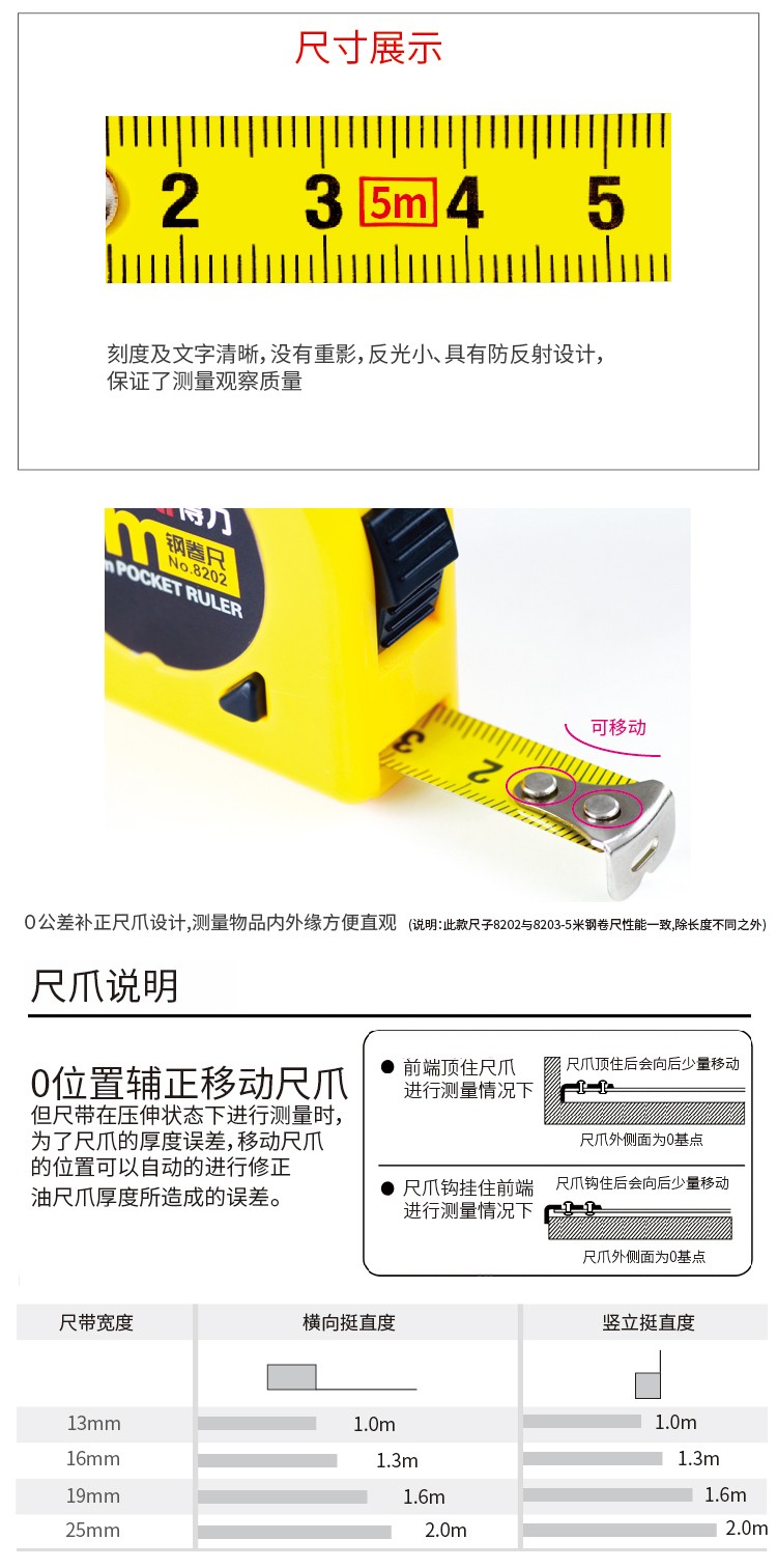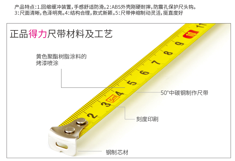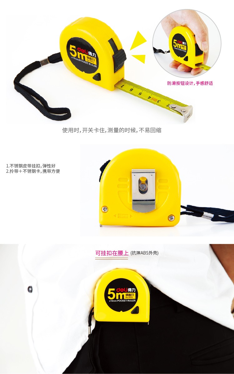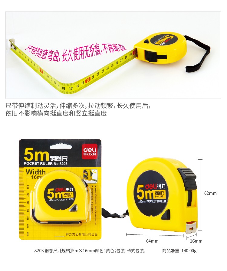 > 得力(deli)5m鎖定功能鋼卷尺 木工尺裝修測量尺子 辦公用品 8203