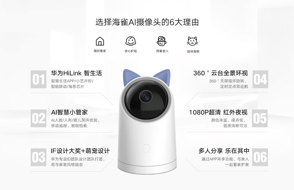 > 華為智選生態(tài)產(chǎn)品 海雀AI全景攝像頭(白色)(支持HUAWEI HiLink)