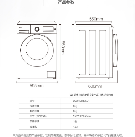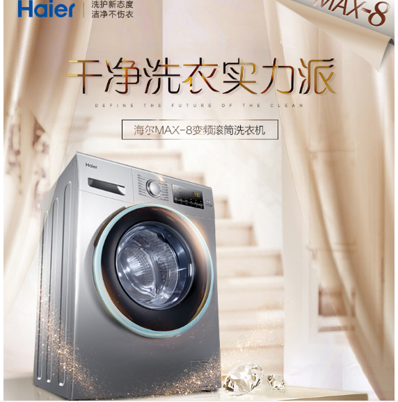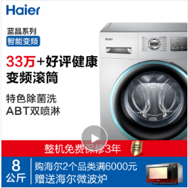 > 海爾(Haier) 滾筒洗衣機(jī)全自動(dòng) 8公斤變頻 雙噴淋泡沫無殘留 防霉 EG8012B39SU1